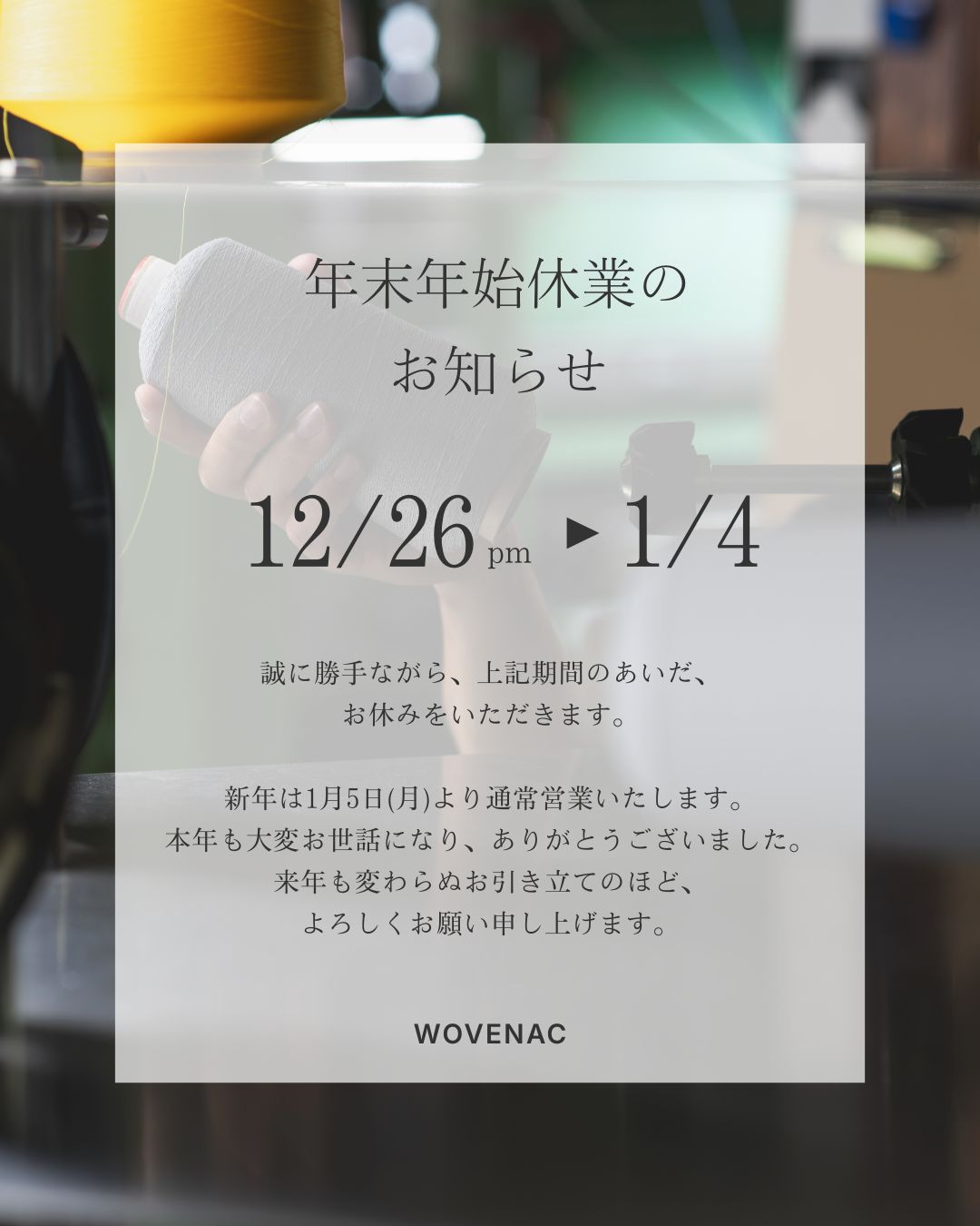 年末年始休業のお知らせ